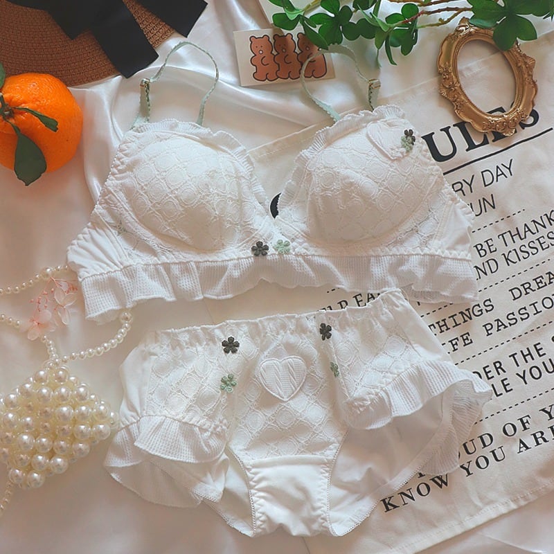 (A-Cカップ)ジャパニーズスタイル ピュアでセクシー ワイヤーレス 薄手コットン ピコットデザイン ガーリーブラ102054383
