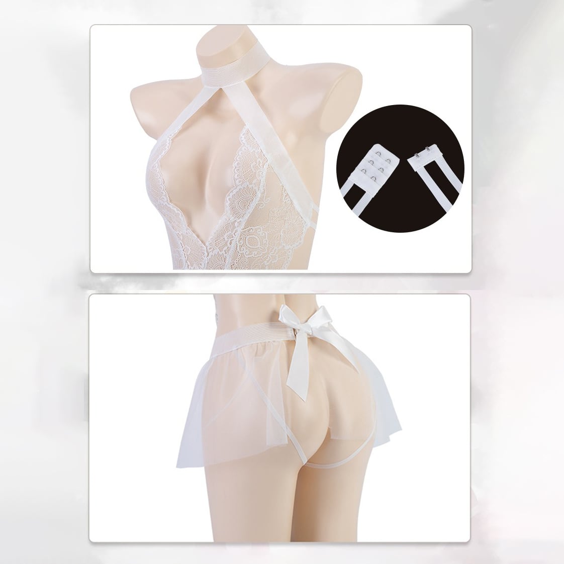 (3点セット)ハロウィン セクシーランジェリー レディース ディープV レース シースルー ハッピーブライド コスプレ制服セット119871164