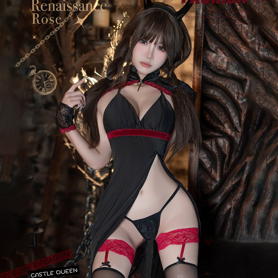 (4点セット)ハロウィン用 セクシー魔女 コスチューム 高腰スリットドレス 暗黒系 制服風 セクシーランジェリー 120162837