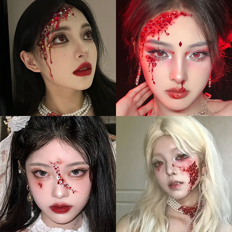 全10種 ハロウィン用 DIY フェイスシール 血の装飾 血のり タトゥーシール コスプレ 小道具 メイクアップ用120183010