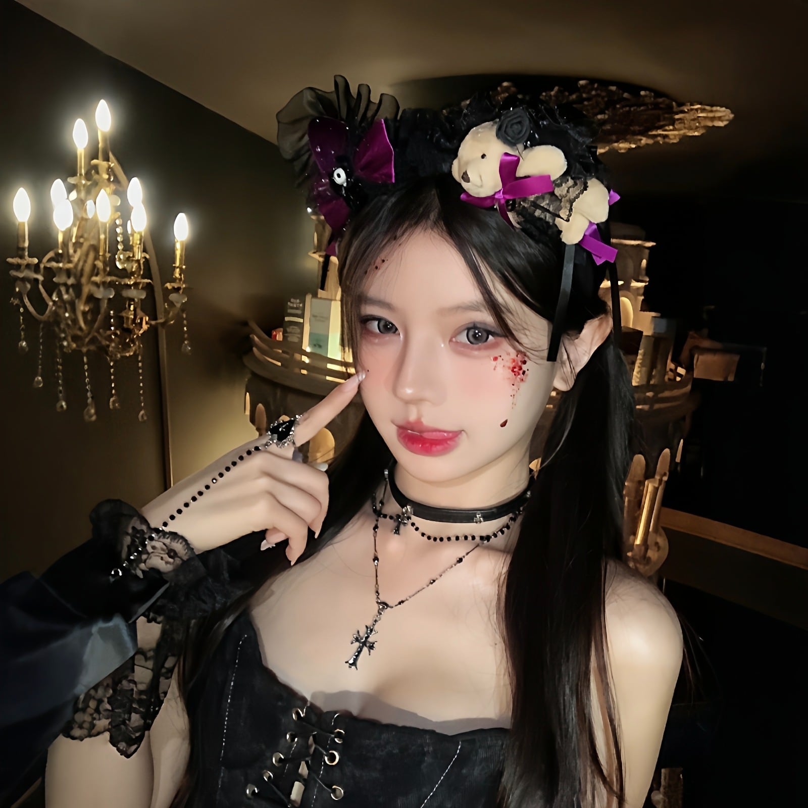 ハロウィン用 ヘアアクセサリー クマ リボン カチューシャ ドッキリ パーティー 悪魔風 スパイダー コスプレ 小物120185361