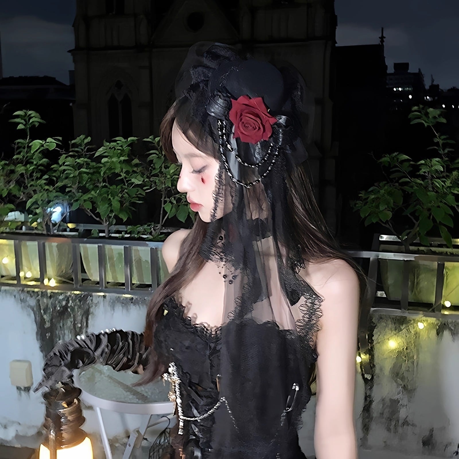 ハロウィン ベール 薔薇レース ハット ゴシック ダーク系 コスプレ 撮影用 ロリータ 花嫁風 ヘアアクセサリー ヘアクリップ120185628