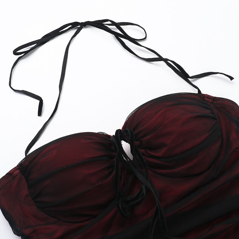 ハロウィン セクシー レッド ホルターネック ゴシック ワンピース120497478