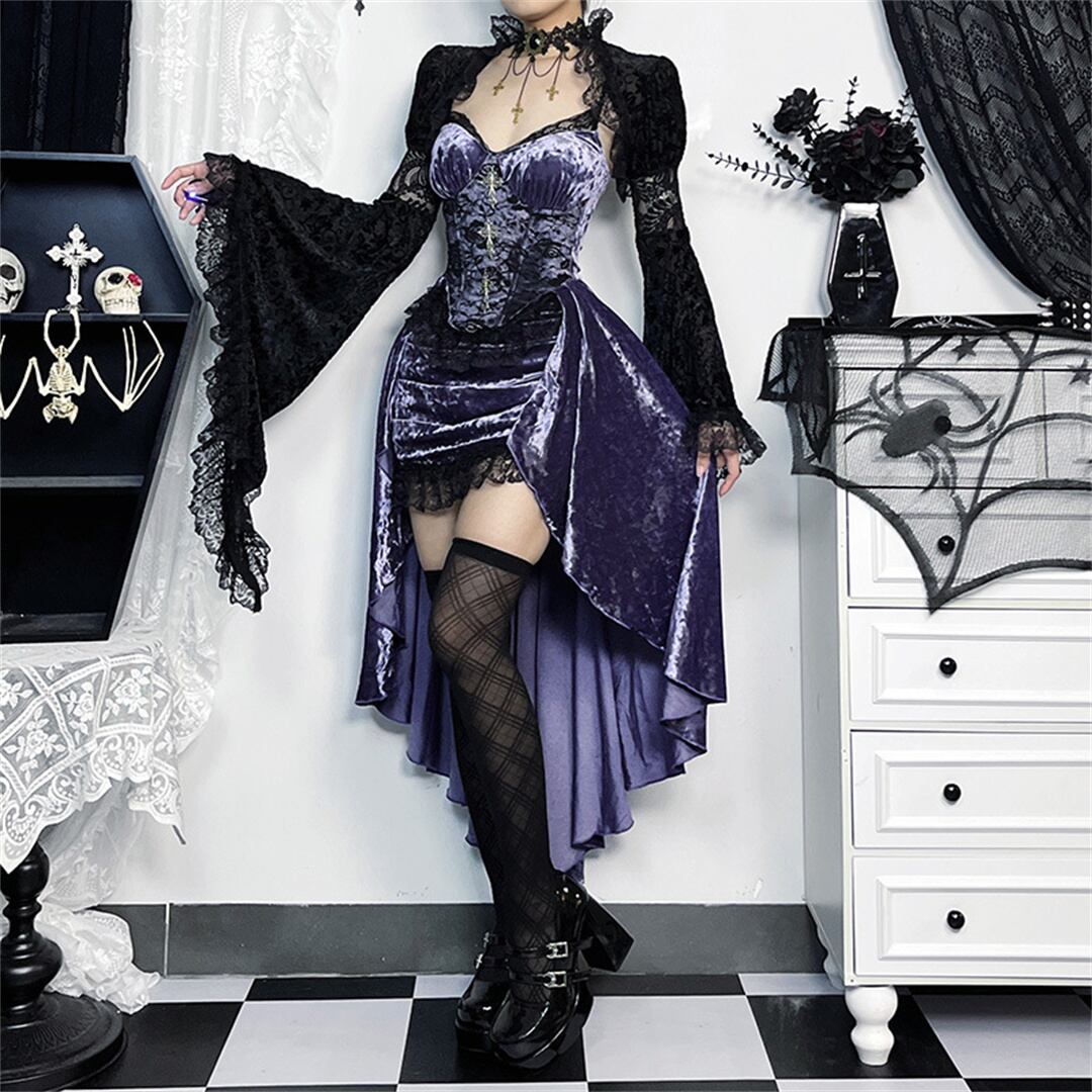 ハロウィン ゴシック 不規則 パープル キャミソール 切り替え ワンピース120614285