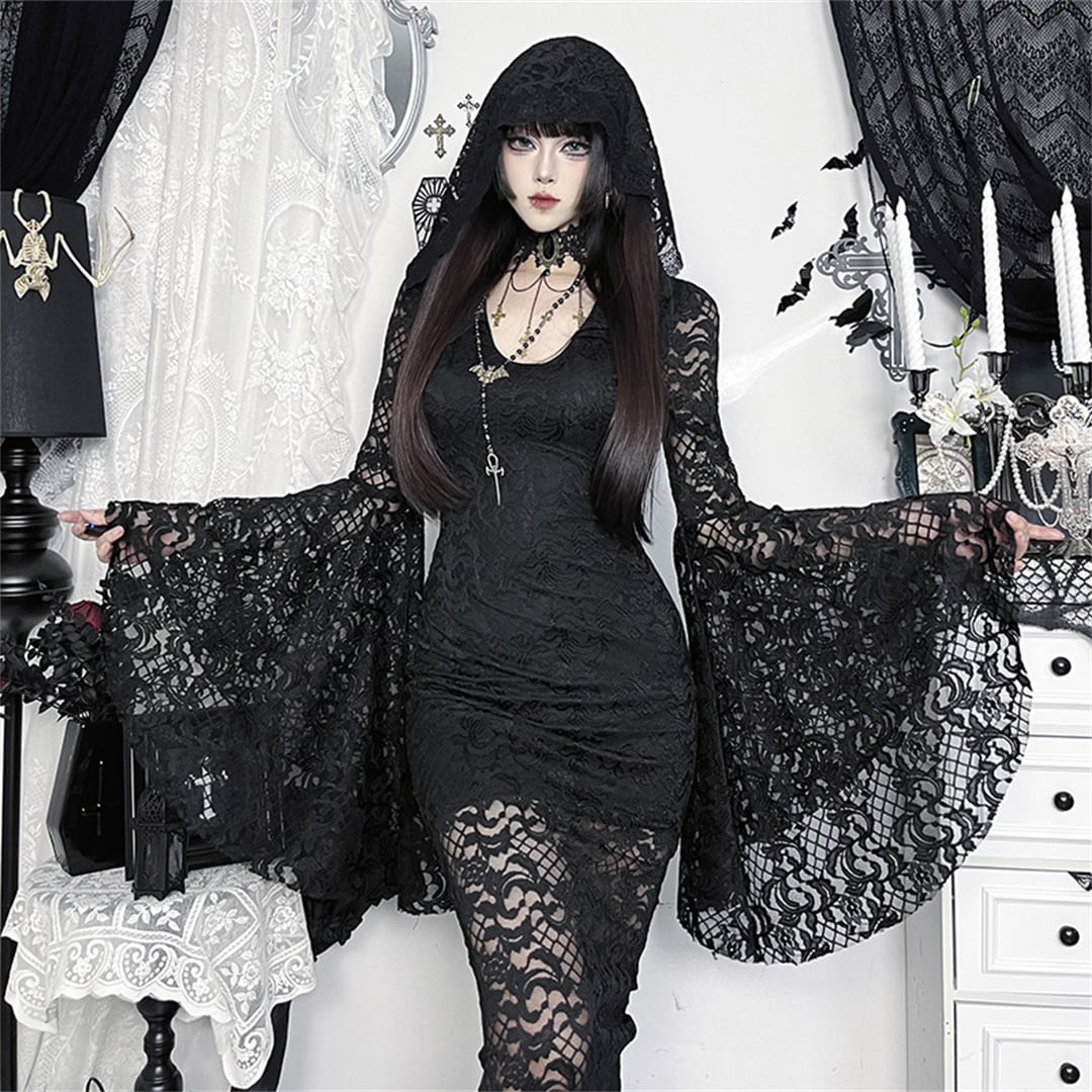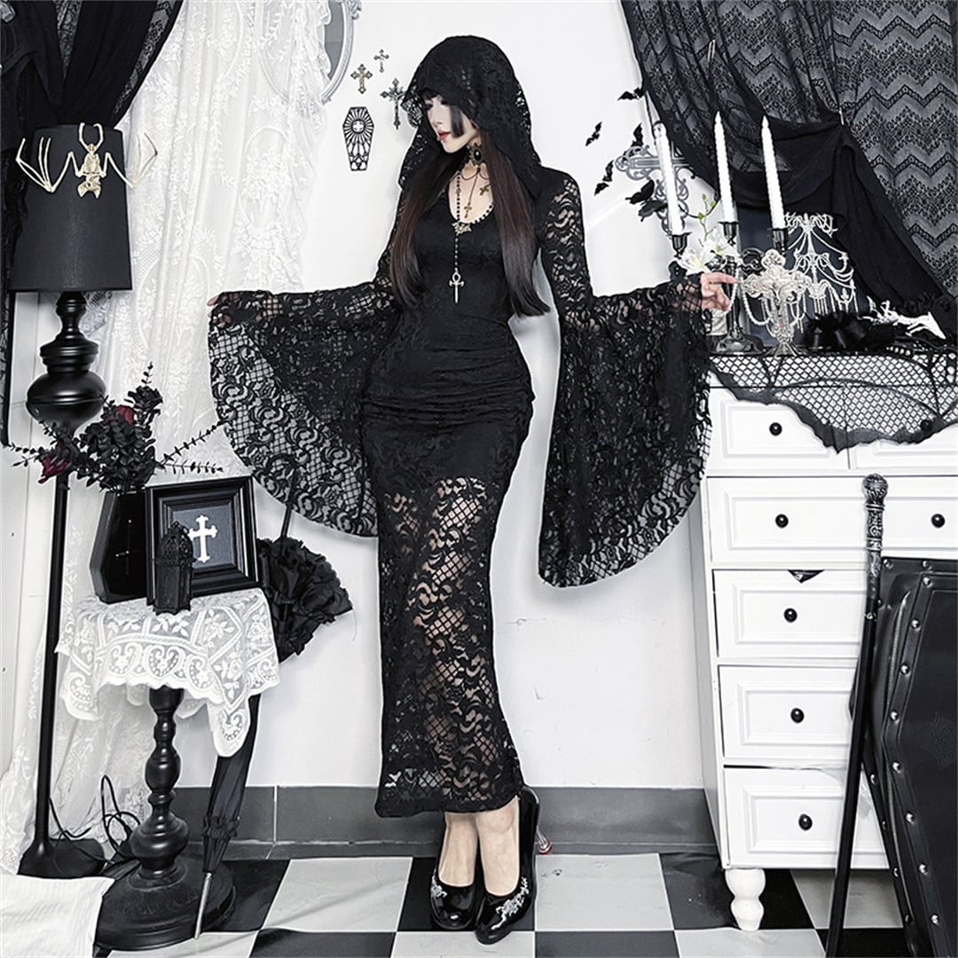ハロウィン ゴシック レース 切り替え Vネック フード付き ワンピース120628140