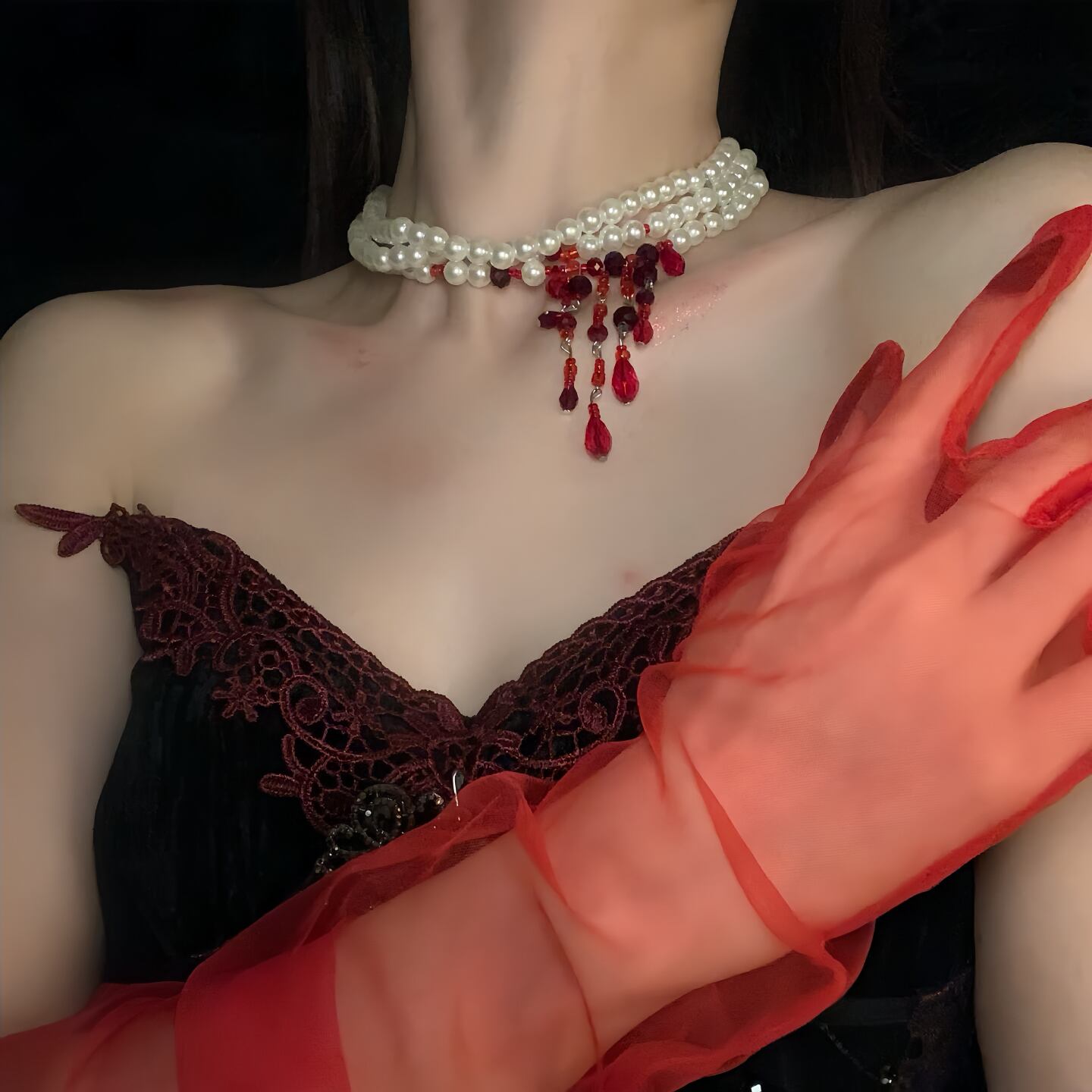 ハロウィン 血糊パール チョーカー ダークネックレス ゴシック風 コスプレアクセ121071687