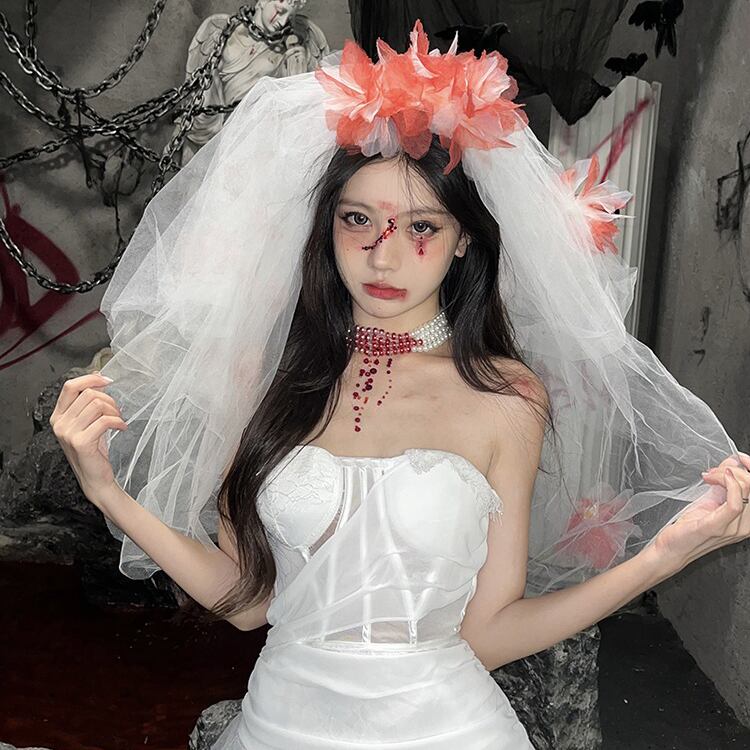 ハロウィン 血染のマリア ダブルレイヤー血花ベール 鬼花嫁風 コスプレ撮影用アクセ121072553