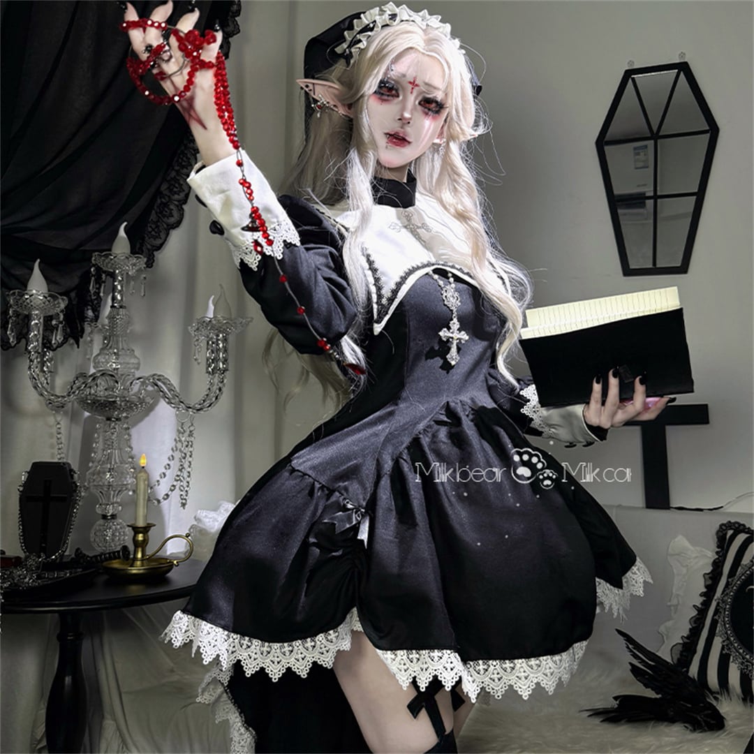ハロウィン レース シスター 修道女 トレーン 不規則 ワンピース121402261