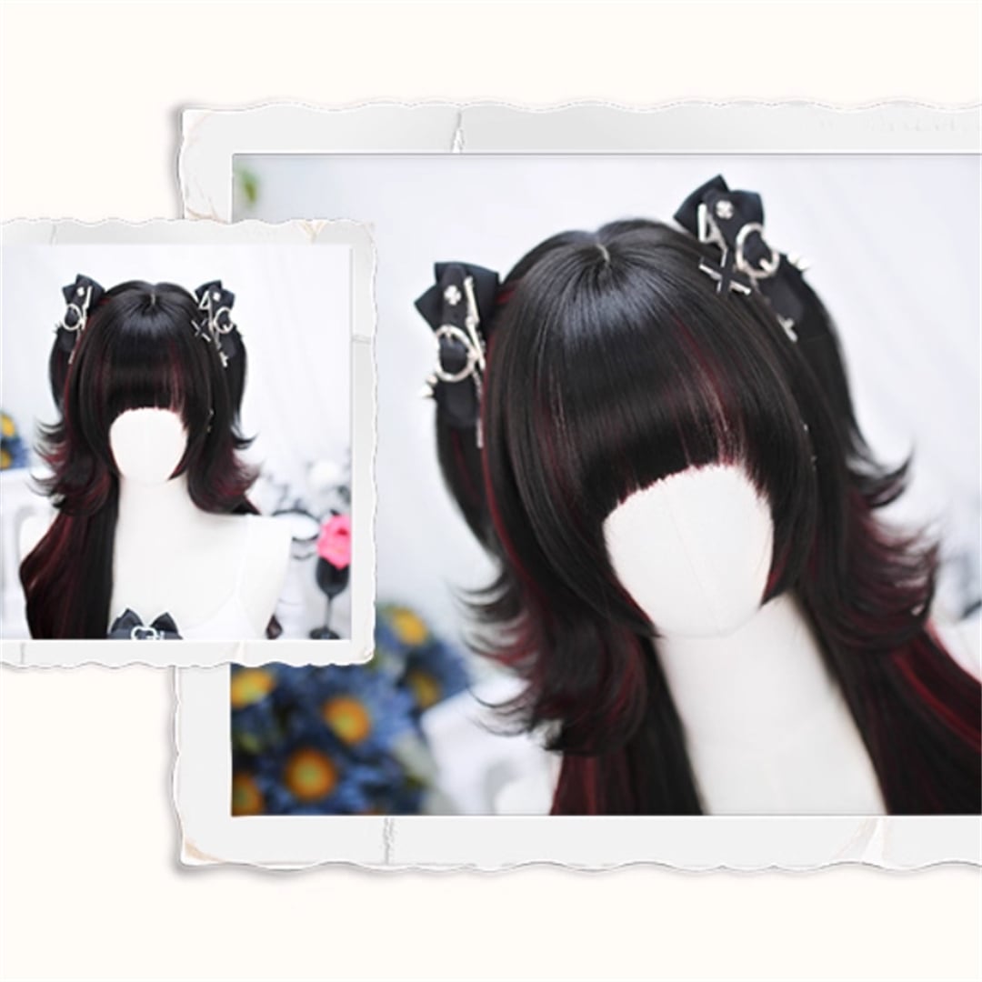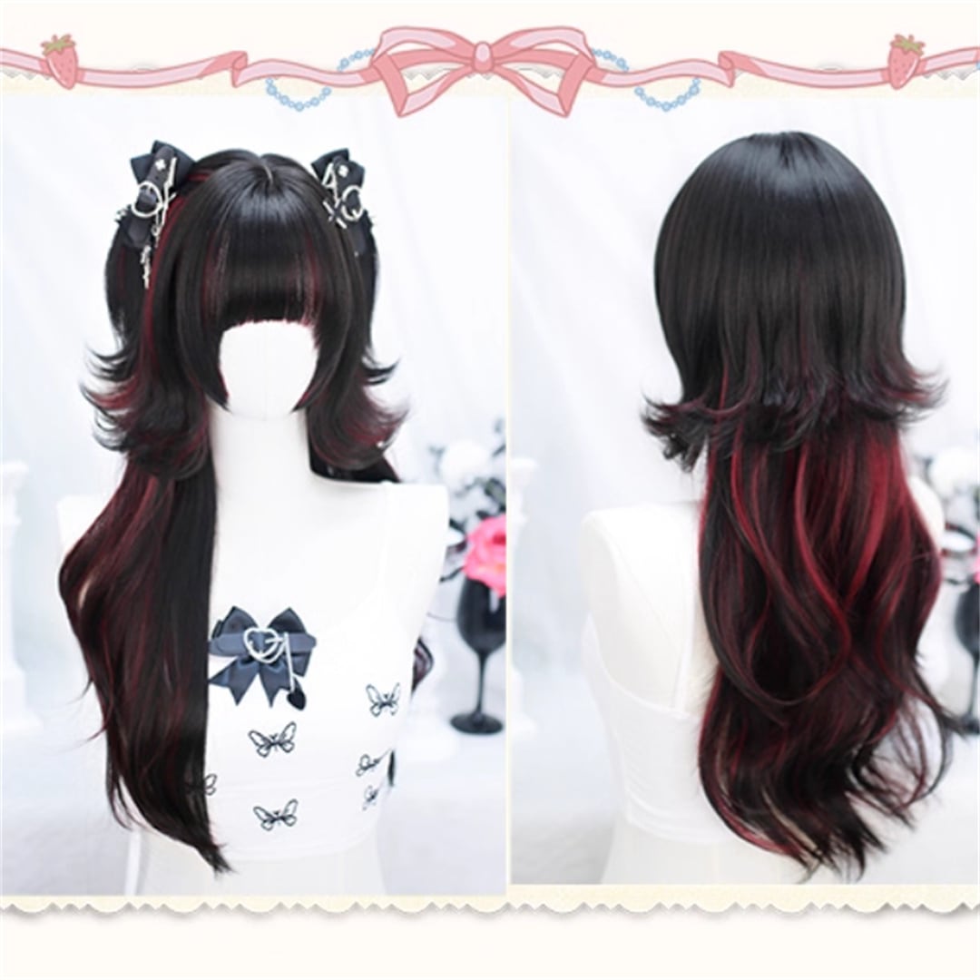 ウィッグ メッシュ 綺麗め ハロウィン レッド ブラック 文化祭 お祭り ロング かつら121717944