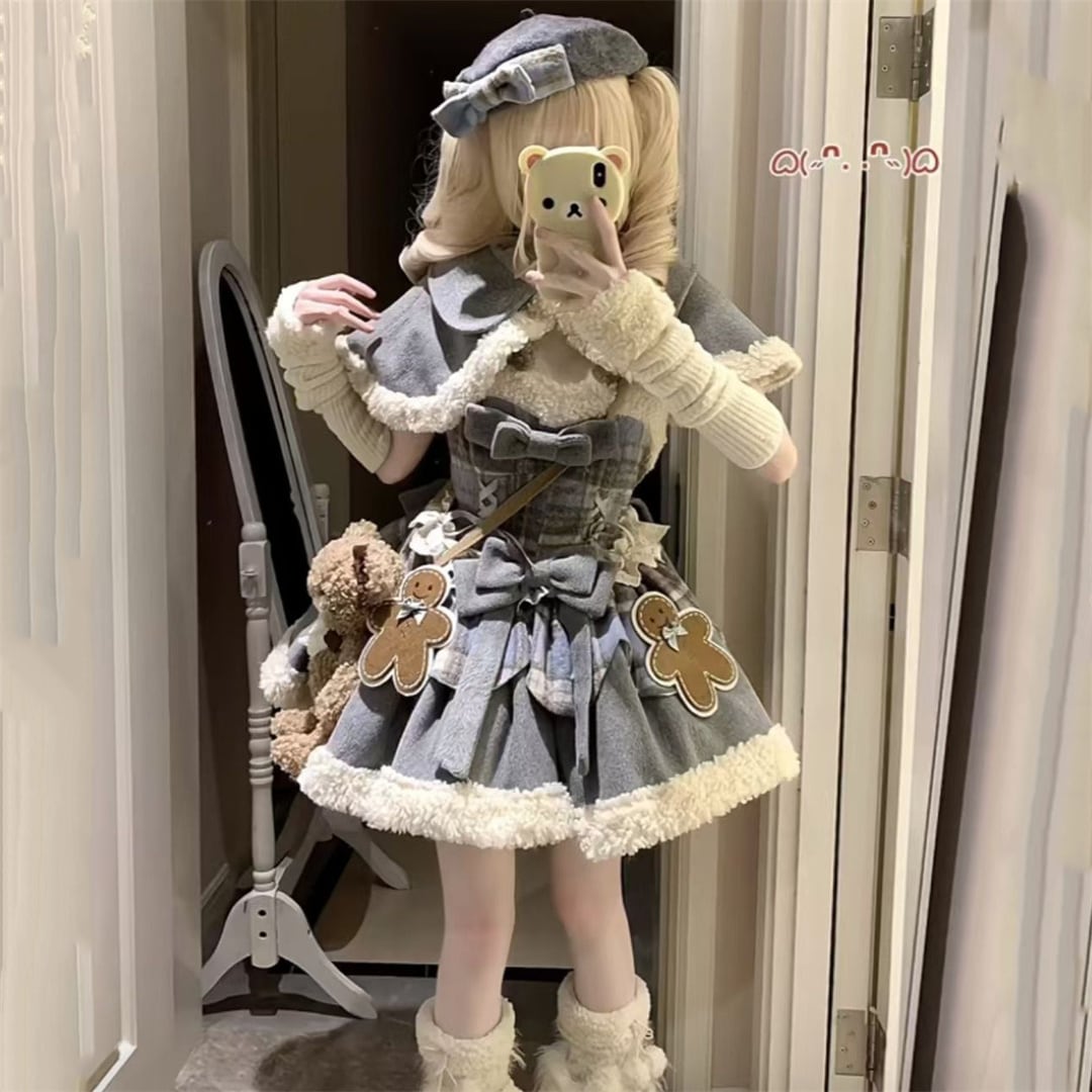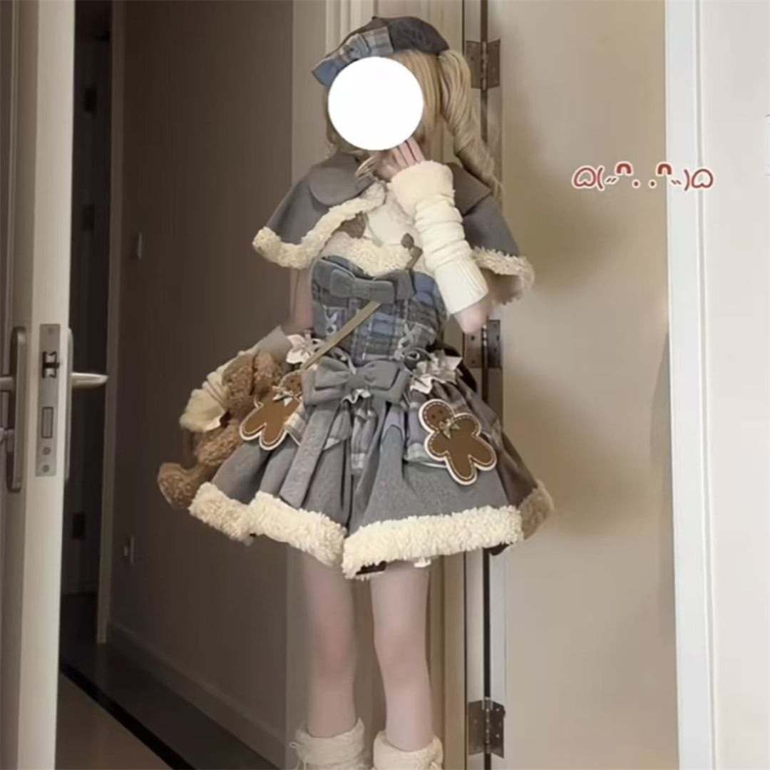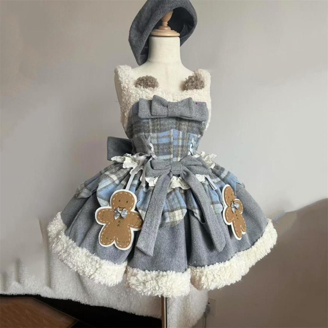 (2点セット) ロリータ 3色展開 かわいい ジンジャーブレッドマン チェック柄 ワンピース121850918