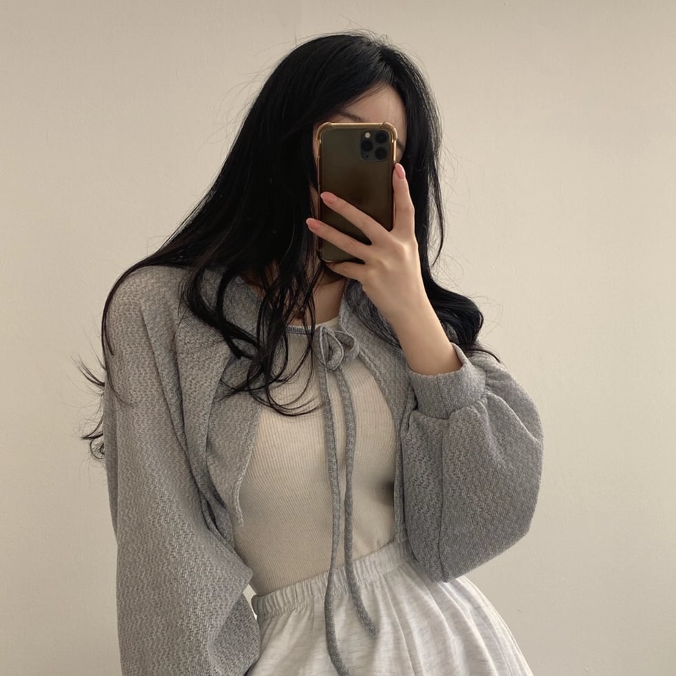 クリスマスコーデ 韓国風 シック 小洒落感たっぷり リボン付き 薄手 ショートカーディガン125150720