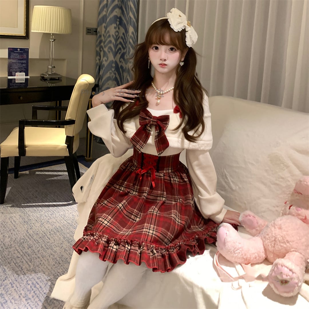 クリスマス お嬢様系 かわいい チェック柄 切り替え ワンピース126098990