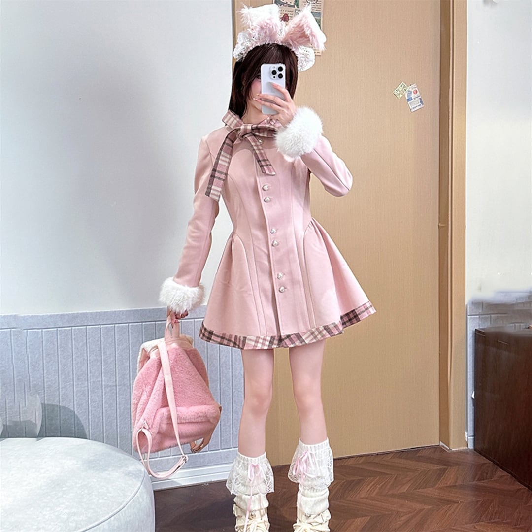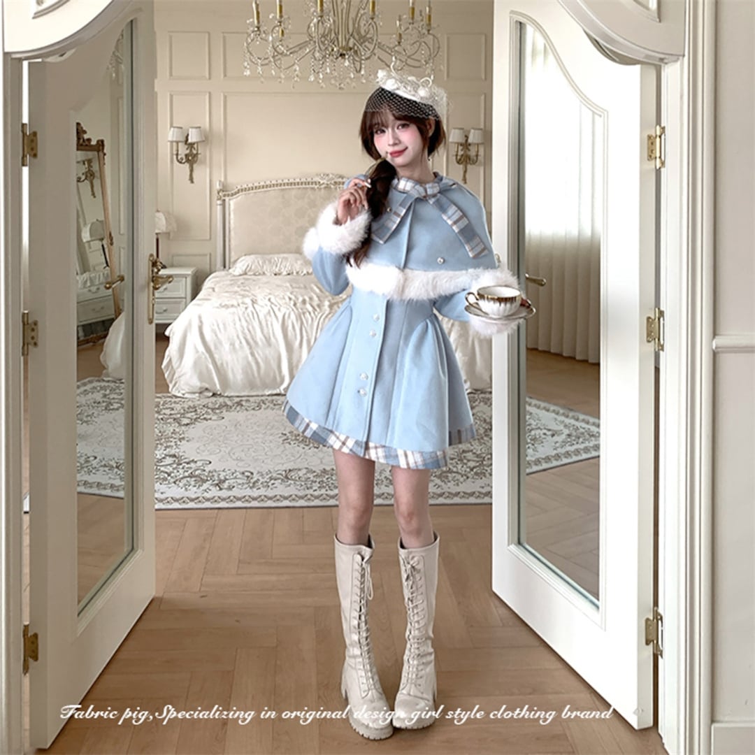 (2点セット)クリスマス デザイン性 お嬢様系 ピンク ブルー 切り替え コート126102160