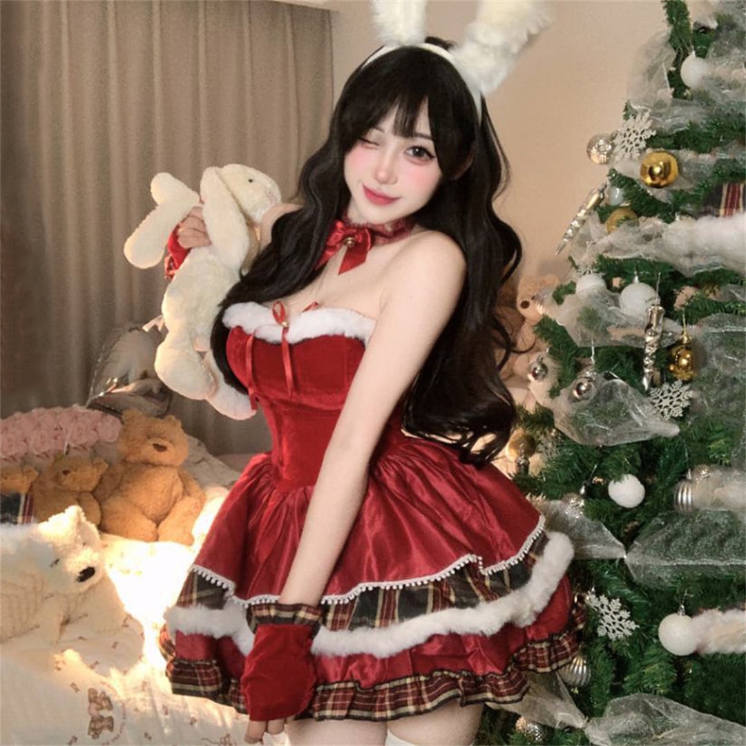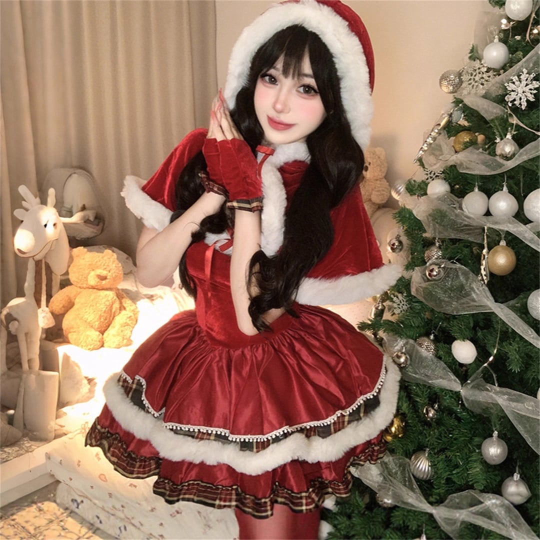 (3点セット)クリスマス お姫様系 摄影 可愛い レッド ワンピース