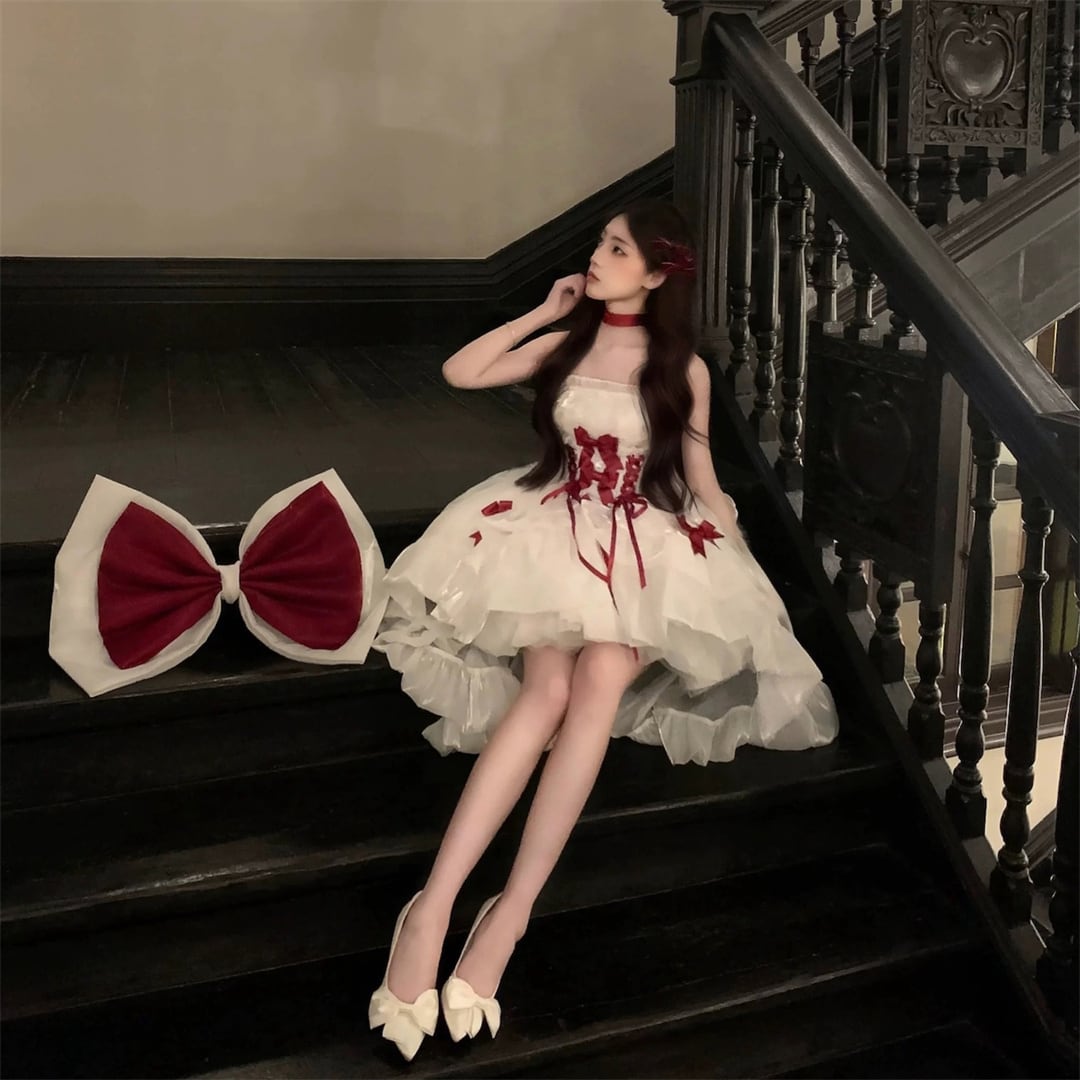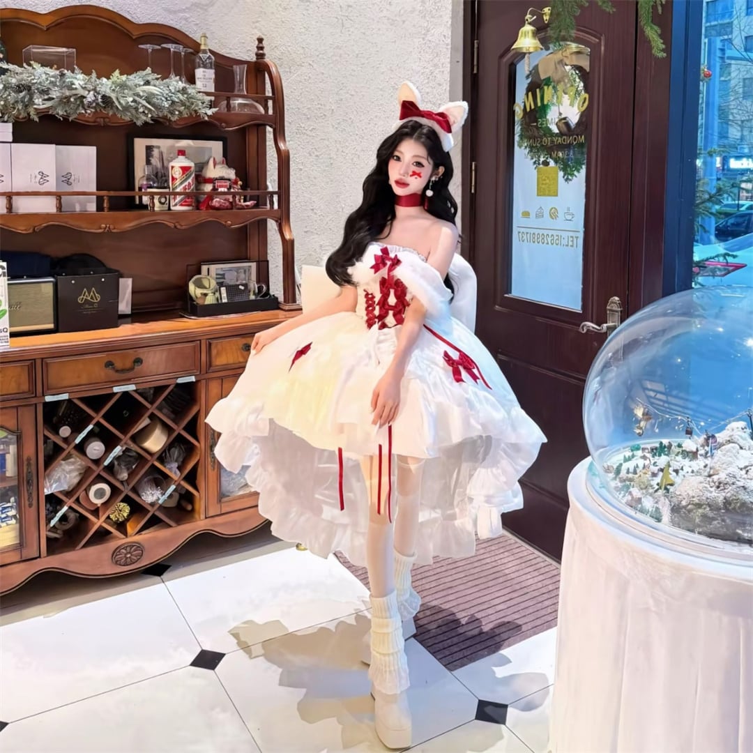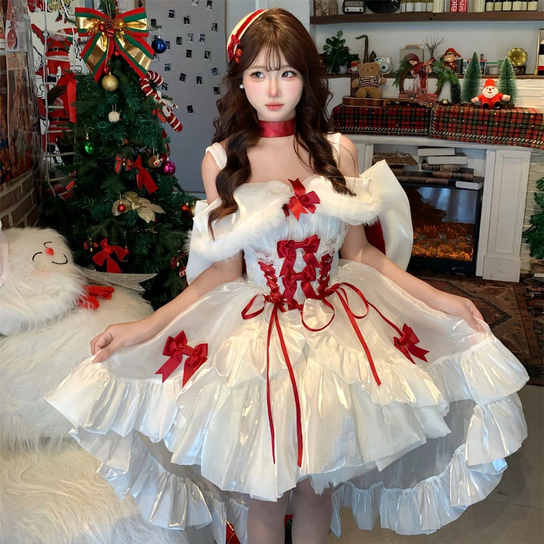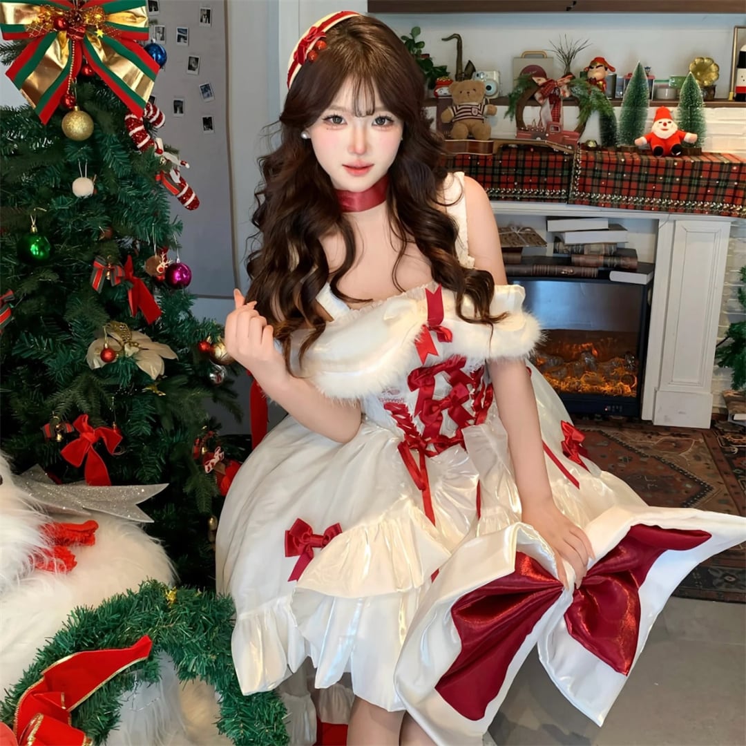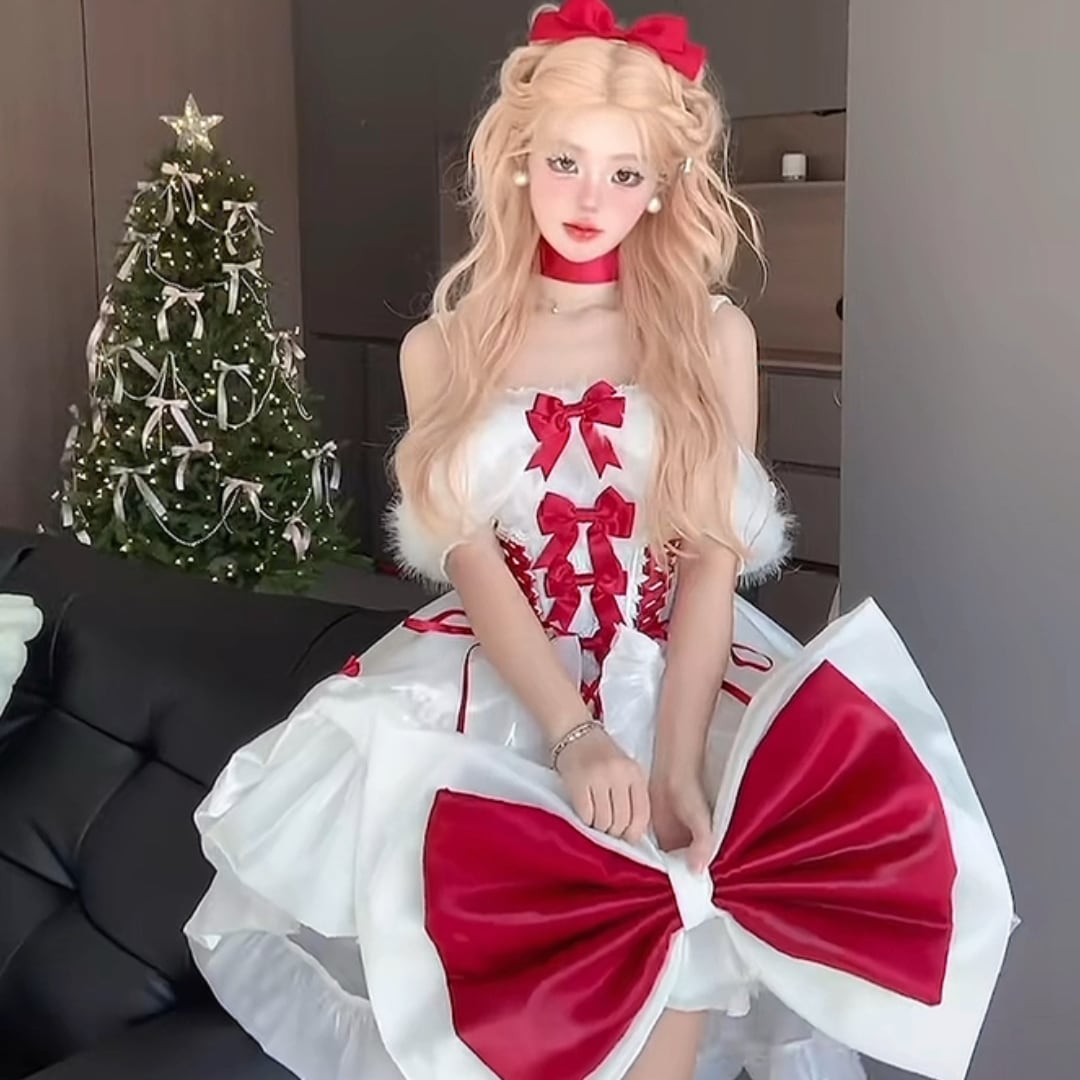 人気の新作 (3点セット) クリスマスパーティー 大リボン オフショルダーワンピース126674424