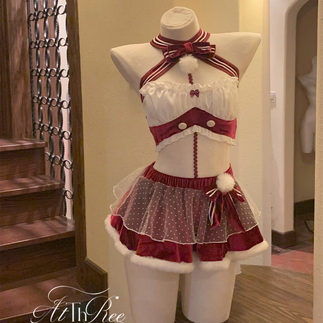 (5点セット)クリスマス 可愛いホルターネック 配色 セクシー ミニスカート セット127304636