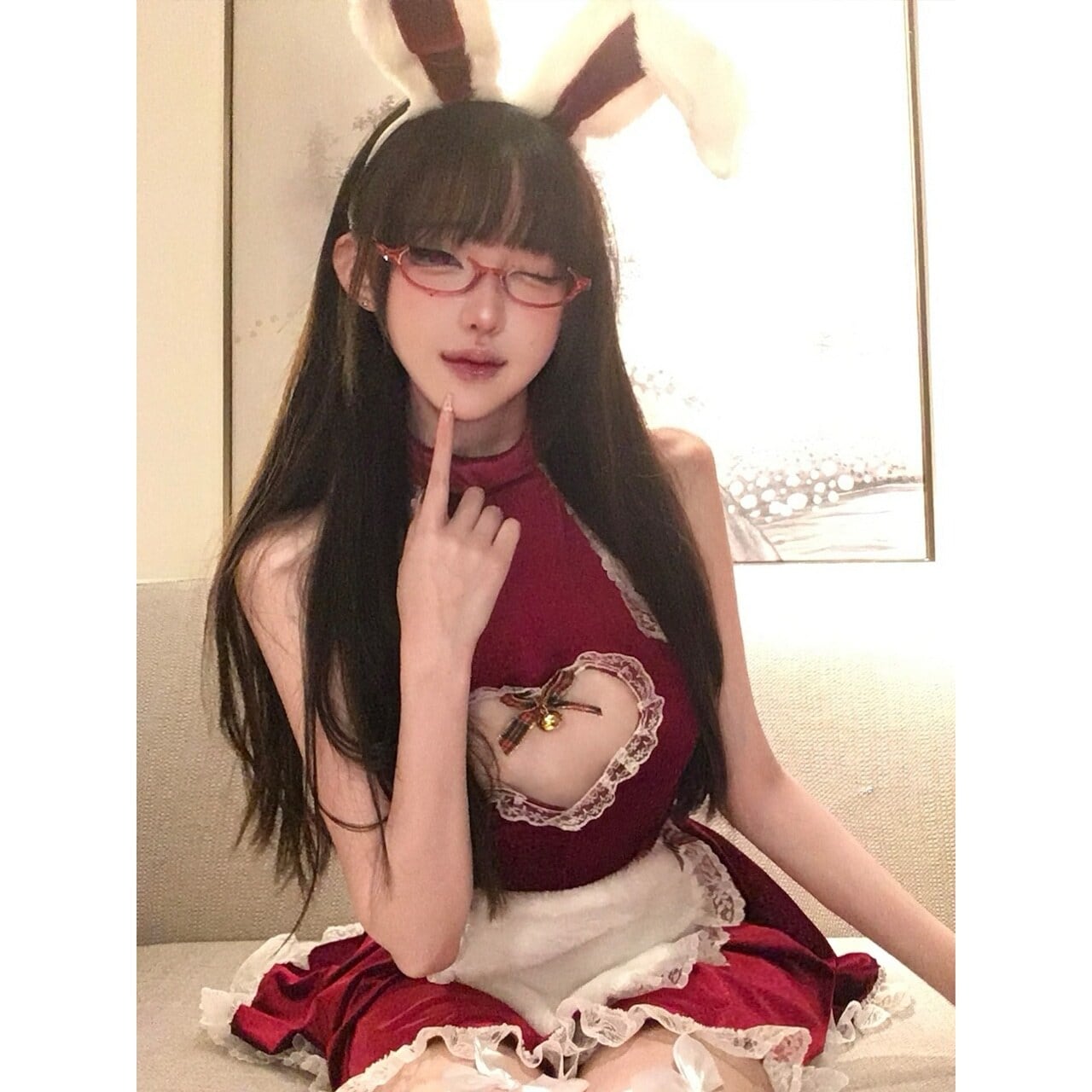 (3点セット)クリスマス セクシー コスプレ メイド バニー風 透かし彫り ランジェリー127305833
