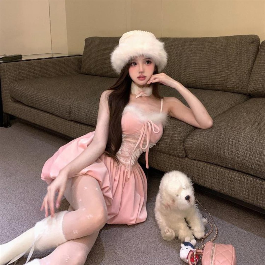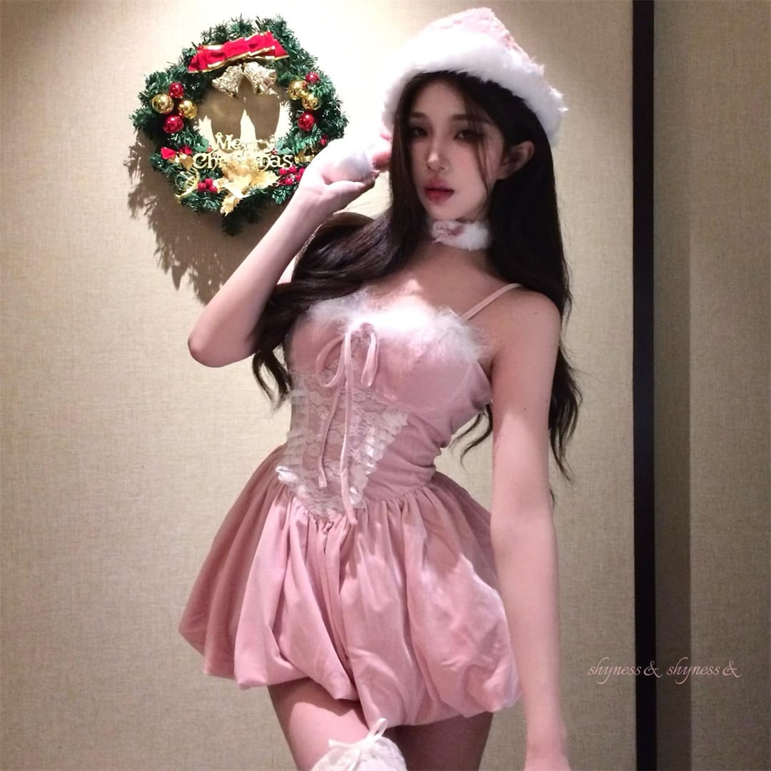 (3点セット)クリスマス キュート コスプレ ピンク レース ワンピース127708464