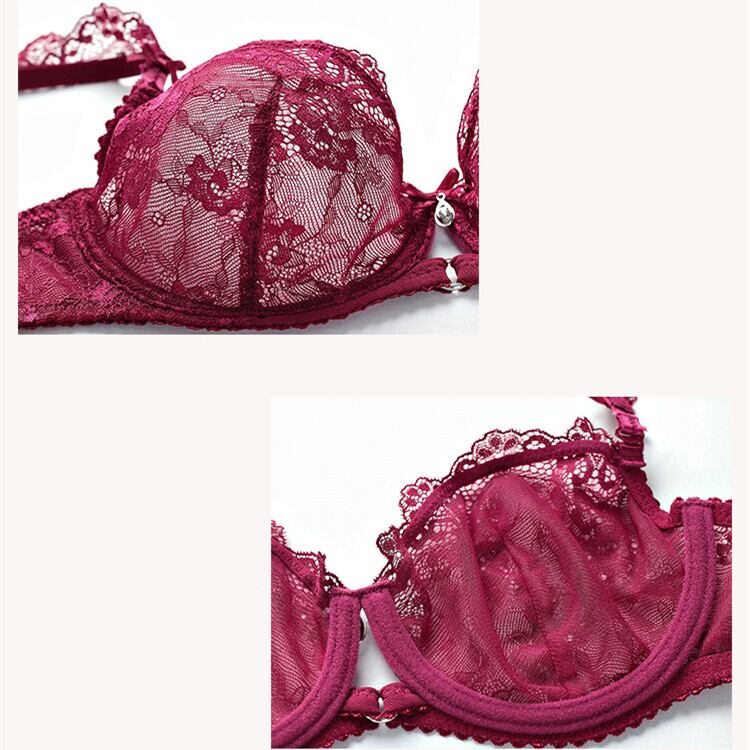 (A-Dカップ)セクシー 下着 ワイヤー入り レース 透け感 ブラ&ショーツセット35999679