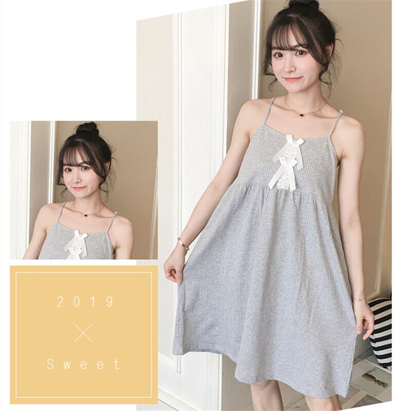 人気満々 カジュアル キュート 無地 レース ボウタイ キャミソール M-2XL ワンピース36095202