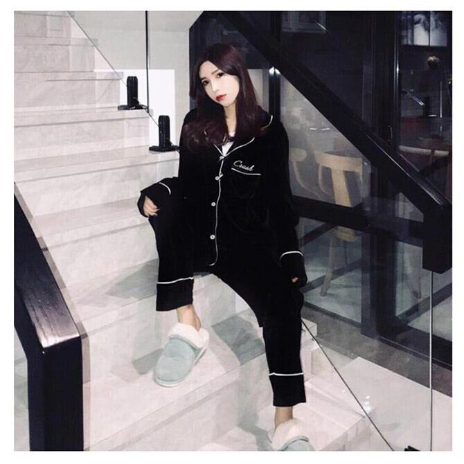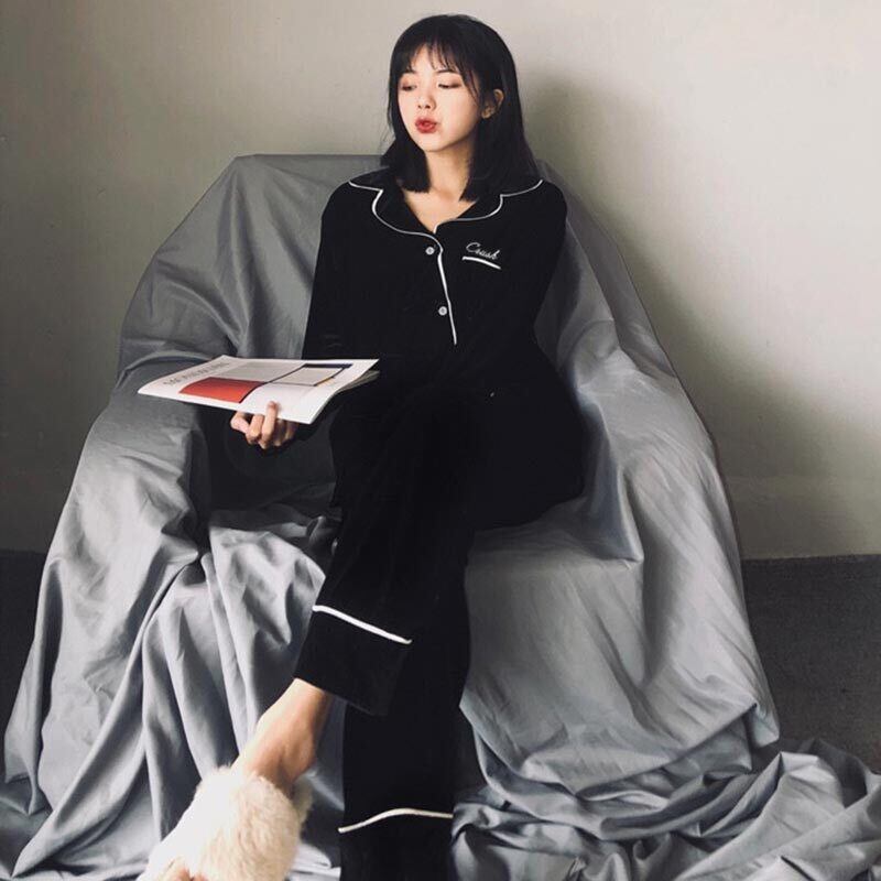 大きいサイズ 気質満点 無地 折襟 2点セット長袖セット・パジャマ36095659