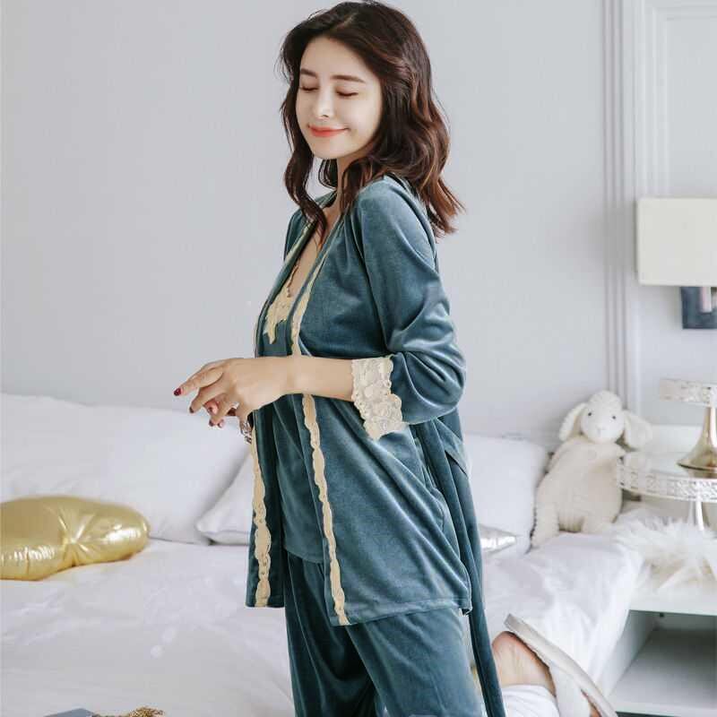 (3点) 気質溢れる 5color レース 長袖 Vネック 無地 長袖セット・パジャマ36123979
