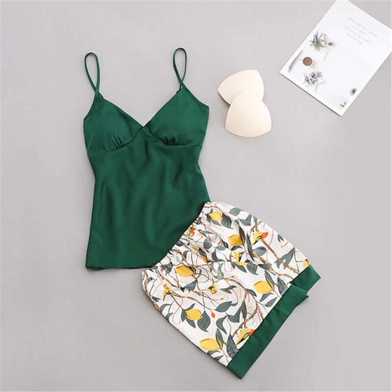 女っぽさが漂う 韓国系 キャミソール プリント 2点セット 半袖セット・パジャマ36185808