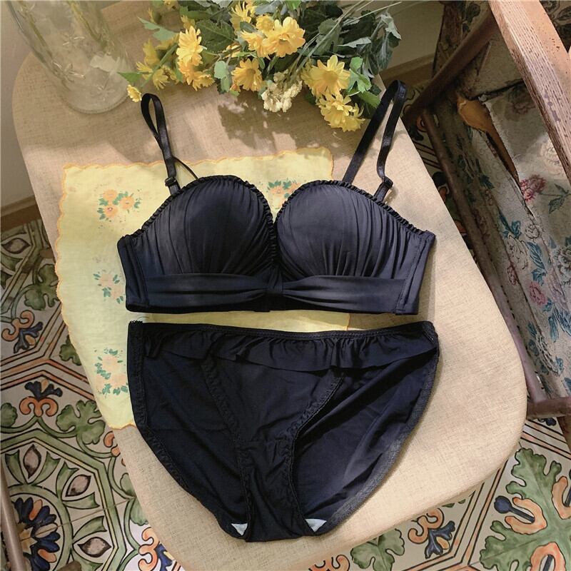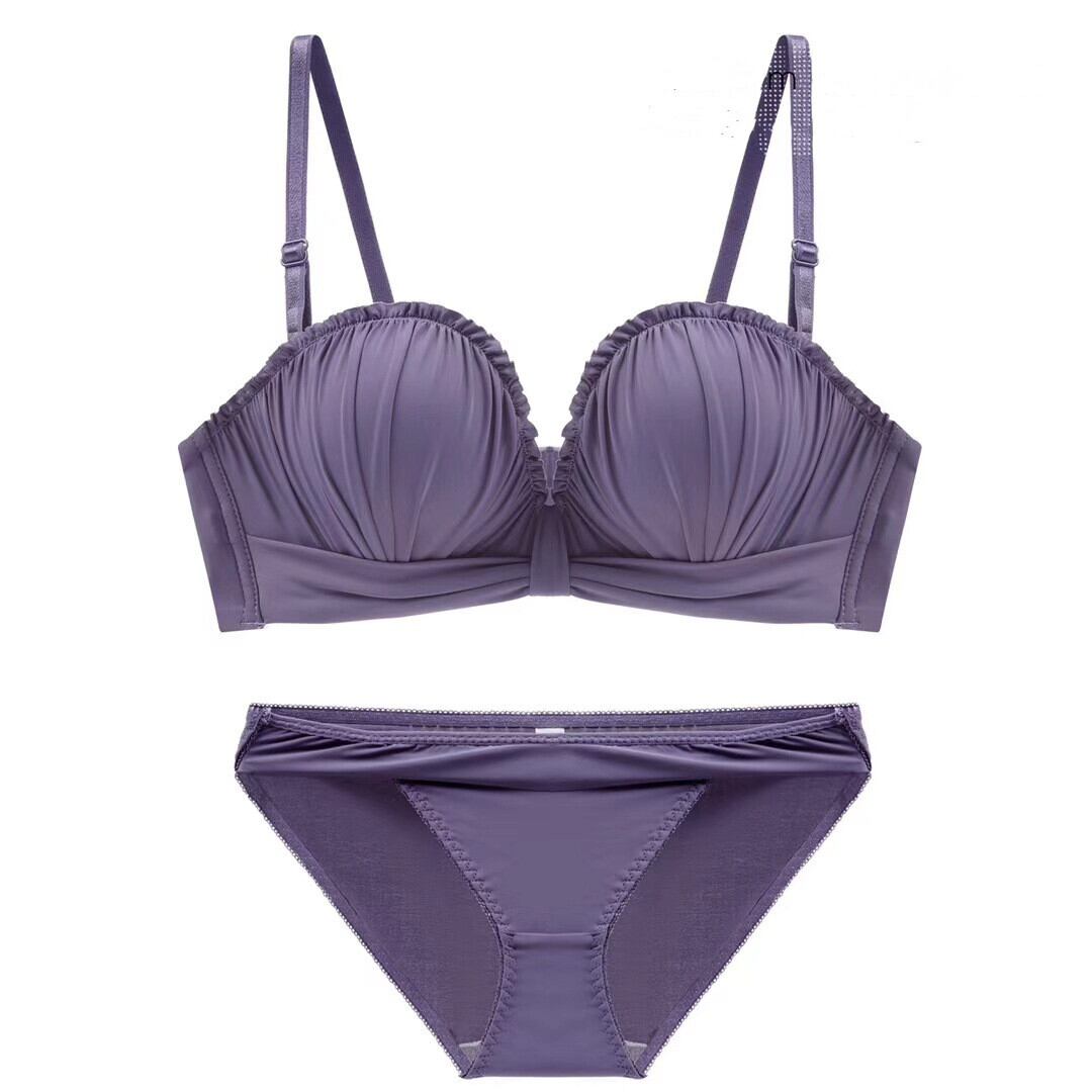 (A-Cカップ)おすすめ ひだ 滑り止め 無地 下着 ワイヤーなし ブラ・ショーツセット36291834
