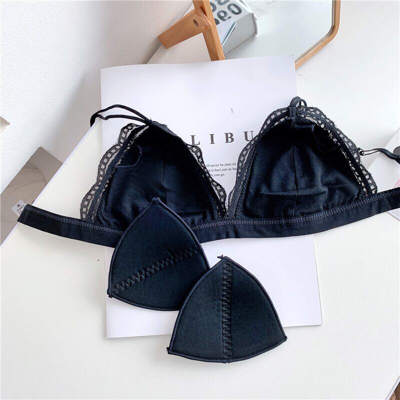 (A-Cカップ)シンプルでオシャレ 透け感 レース ワイヤーなし 無地 ブラ&ショーツセット36293691