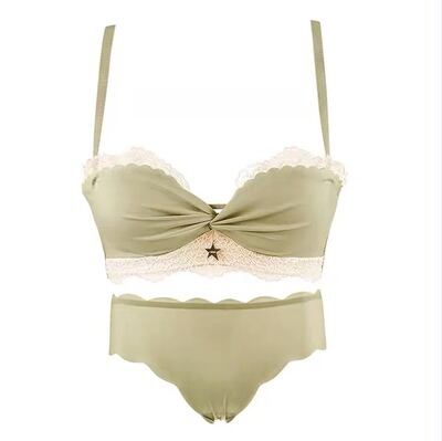 (ABカップ)シンプルでオシャレ ストラップレス レース 5色 ブラ&ショーツセット36306675