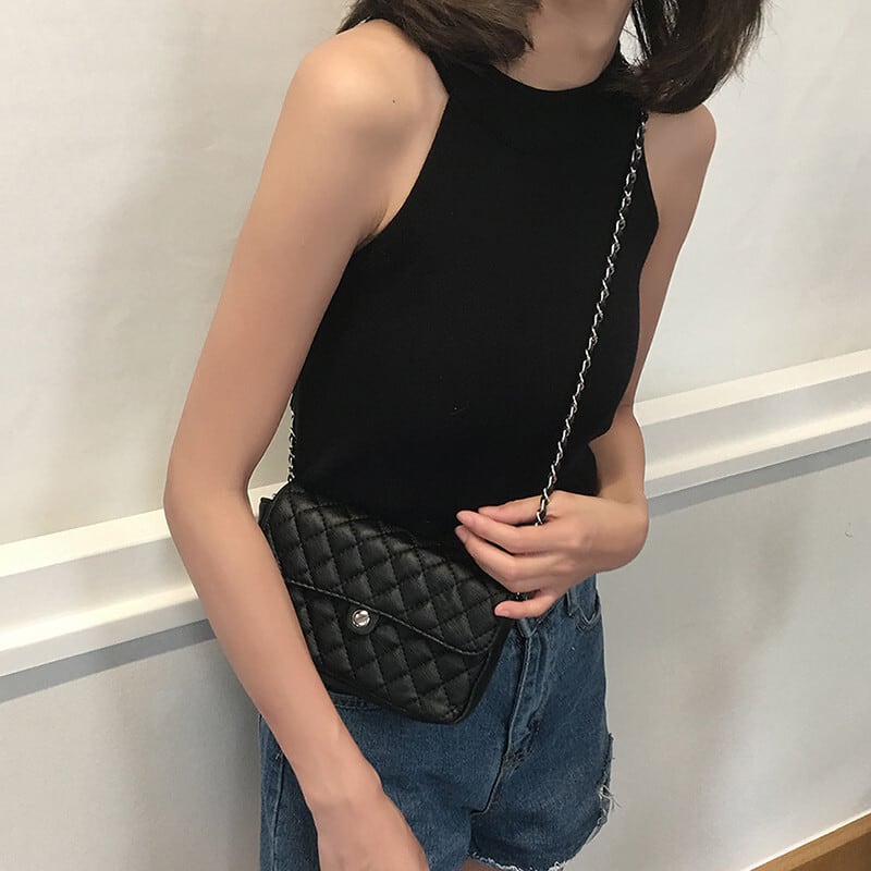 存在感たっぷり セクシー 無地 ブラック ラウンドネック キャミソール36346885
