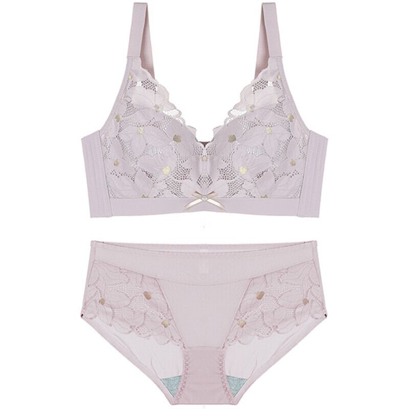 (B-Eカップ)大きい胸 女性らしさをUP セクシー 刺繍 下着 レース ブラ&ショーツセット36353553
