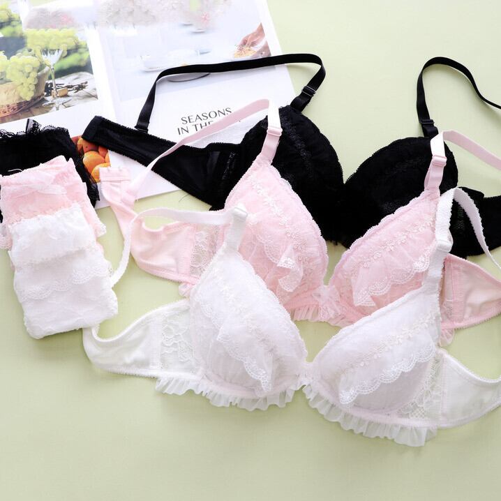 (B-Fカップ)女性らしさをUP キュート レース ブラ&ショーツセット36354210