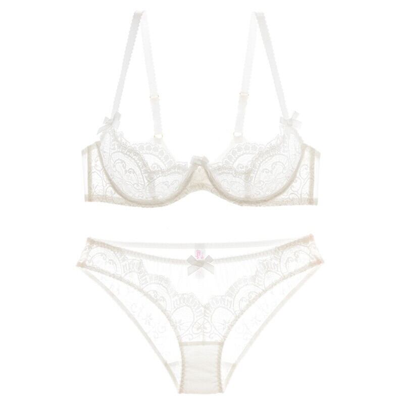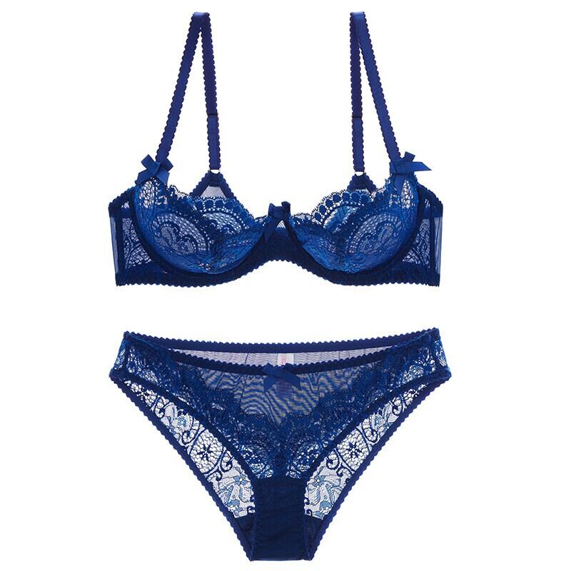 (A-Dカップ)個性的なデザイン セクシー 透け感 レース ブラ&ショーツセット36435646
