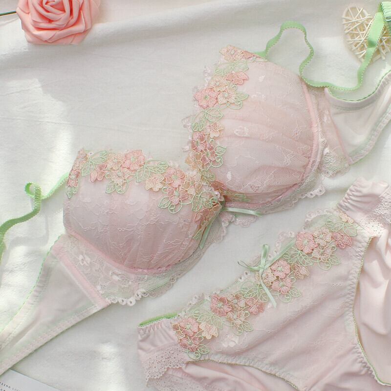 (B-Fカップ)高級感 セクシー 刺繍 花柄 ワイヤー入り ブラ&ショーツセット36456306