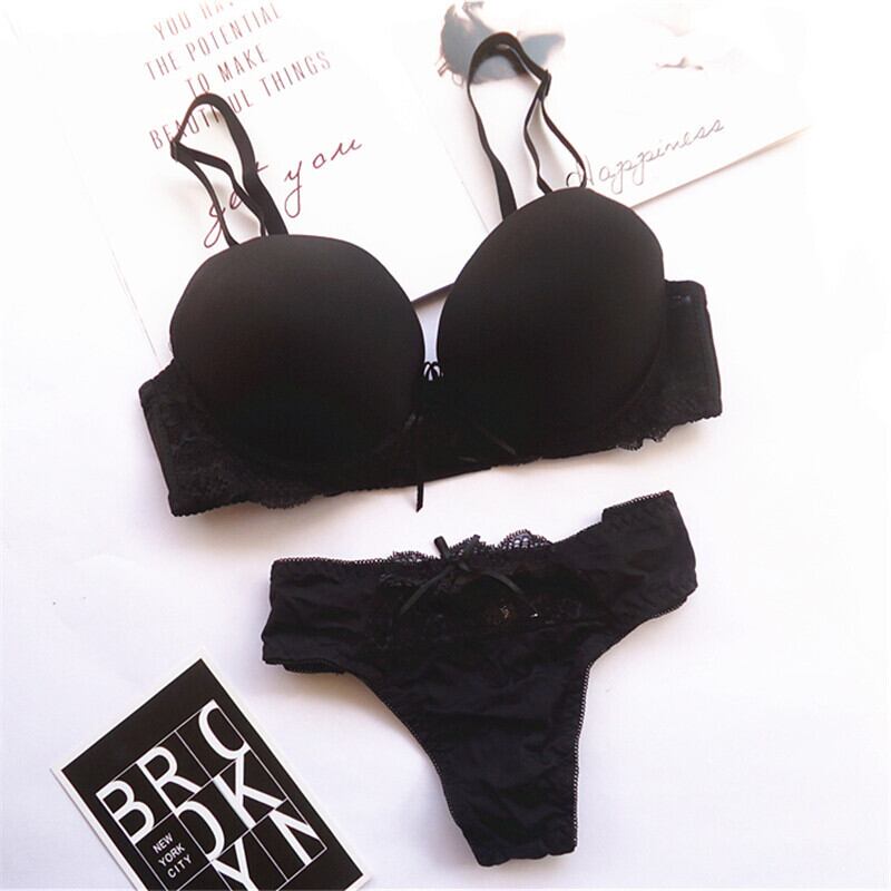 (B-Eカップ)大きい胸 全6色 セクシー無地 ワイヤー入り ブラ&ショーツセット36467593