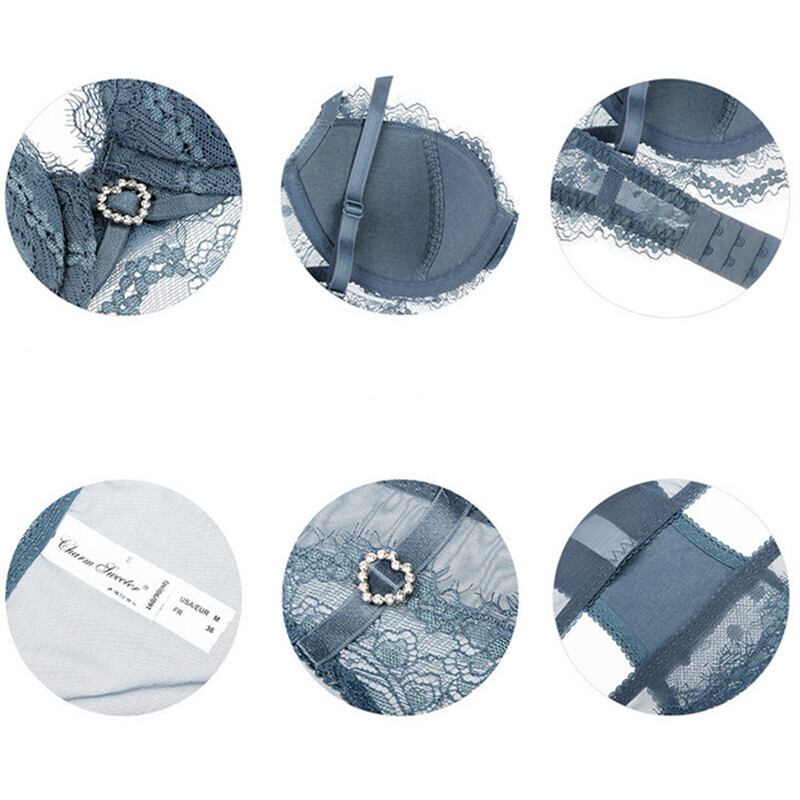 (A-Dカップ)好感度UP セクシー 透け感 ワイヤー入り レース ブラ&ショーツセット36485947