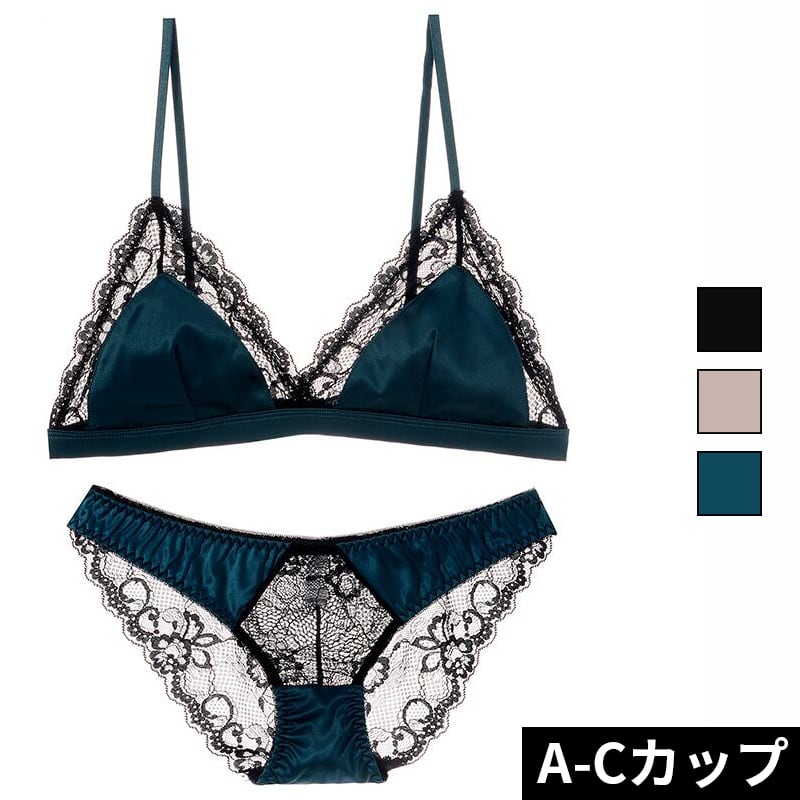(A-Cカップ)大人っぽさUP セクシー 切り替え ワイヤーなし レース ブラ&ショーツセット36496508