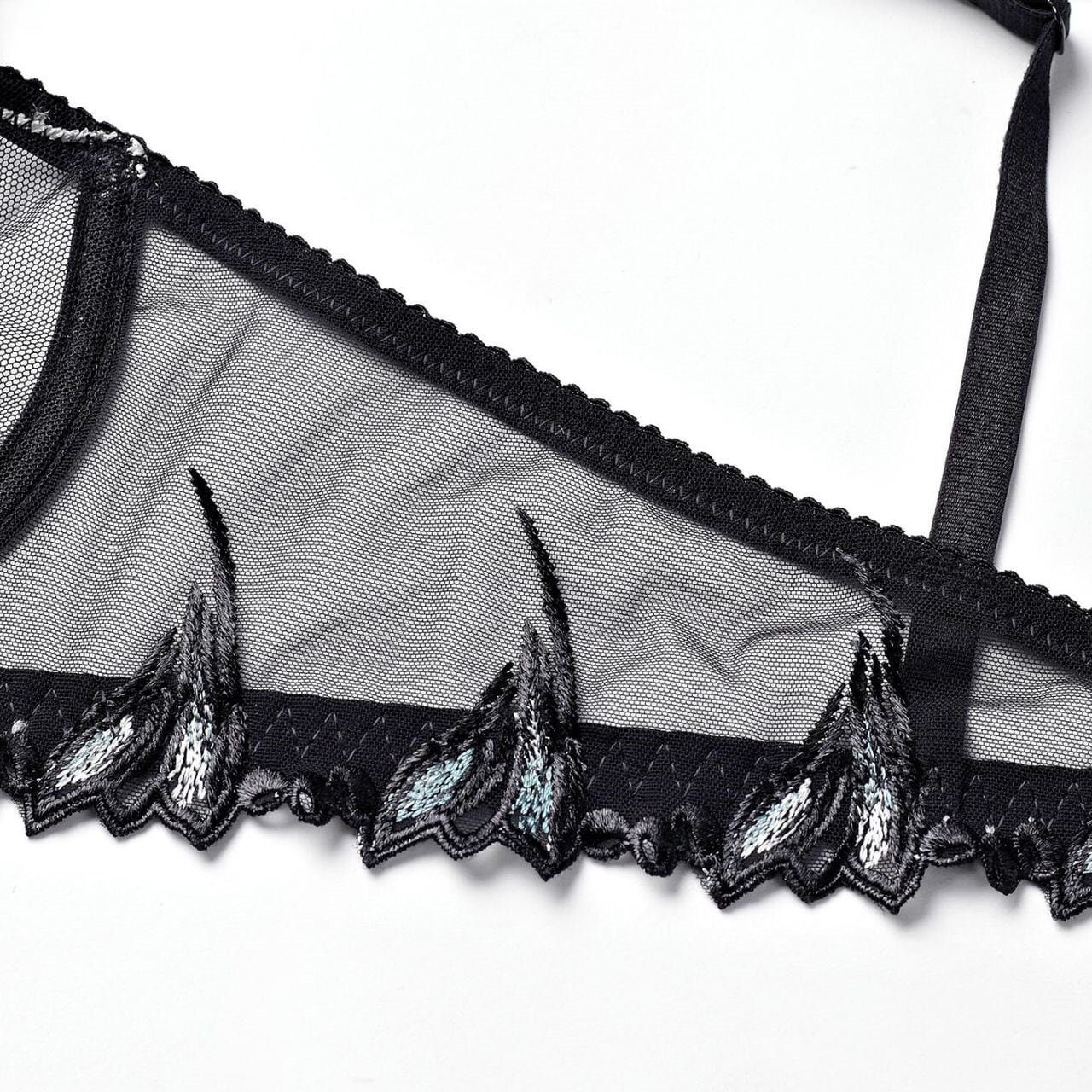(B-Dカップ)刺繍花 透かし彫り 6色 セクシー 透視感 ブラ&ショーツセット36500910