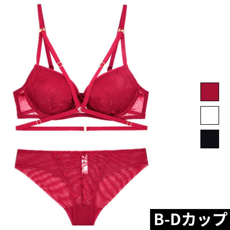 (B-Dカップ)女っぽさが漂う セクシー 刺繍 後ろホック ワイヤーなし ブラ&ショーツセット36524316