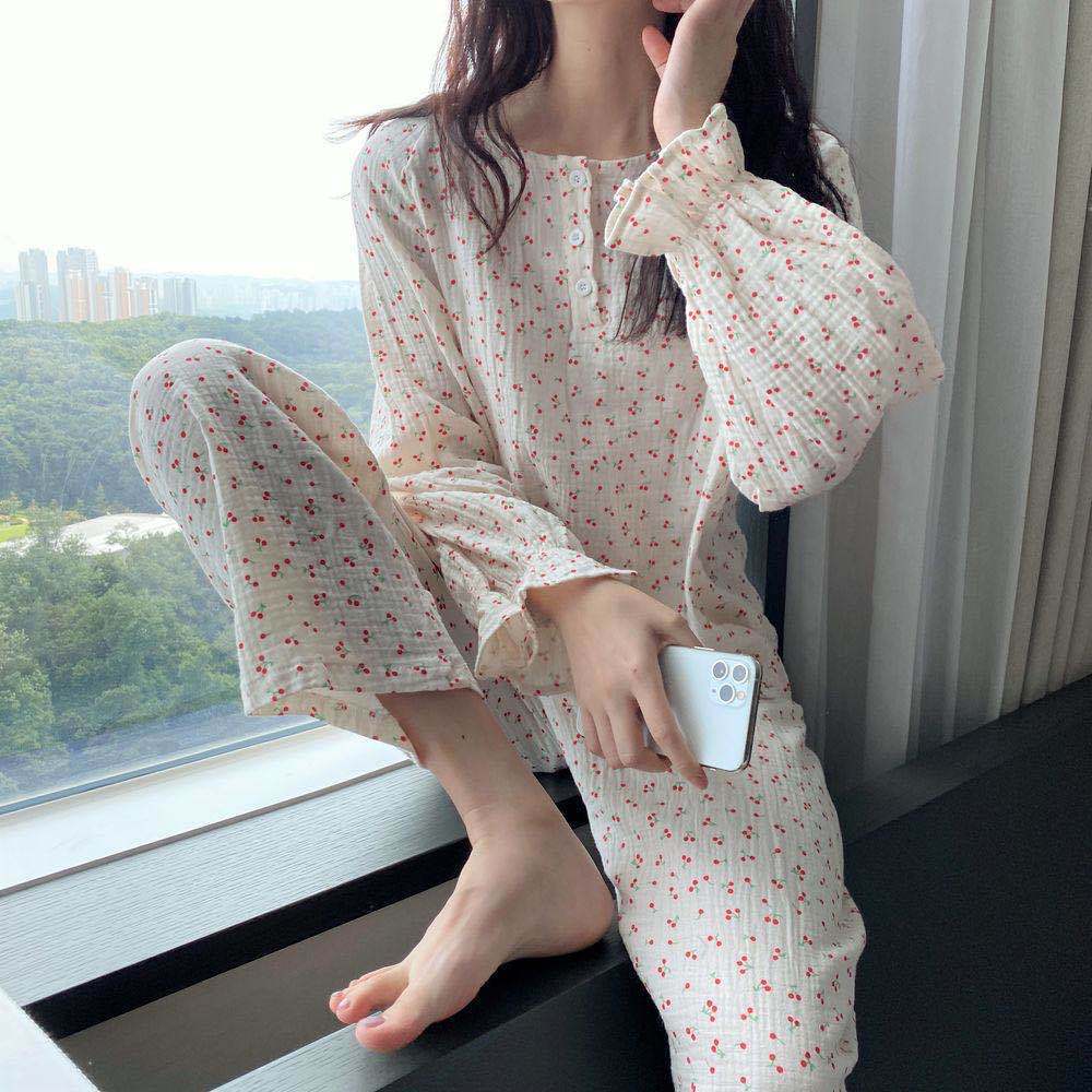 清新 チェリー 韓国系 かわいい ラウンドネック プリント 長袖セット・パジャマ36555694