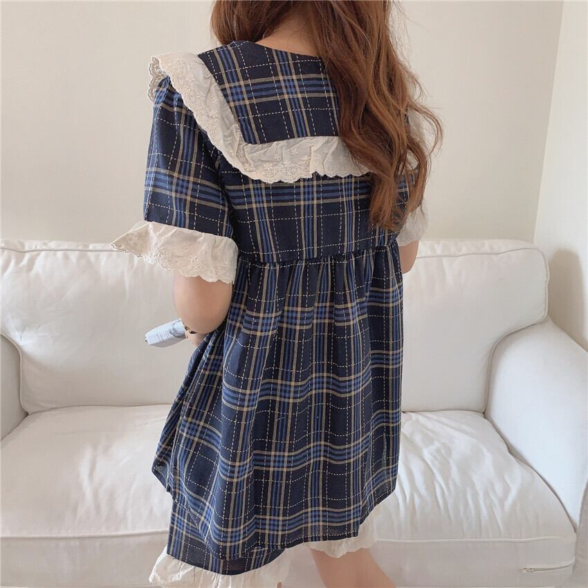 チェック柄 レース ボウタイ カジュアル かわいい 半袖セット・パジャマ36670826
