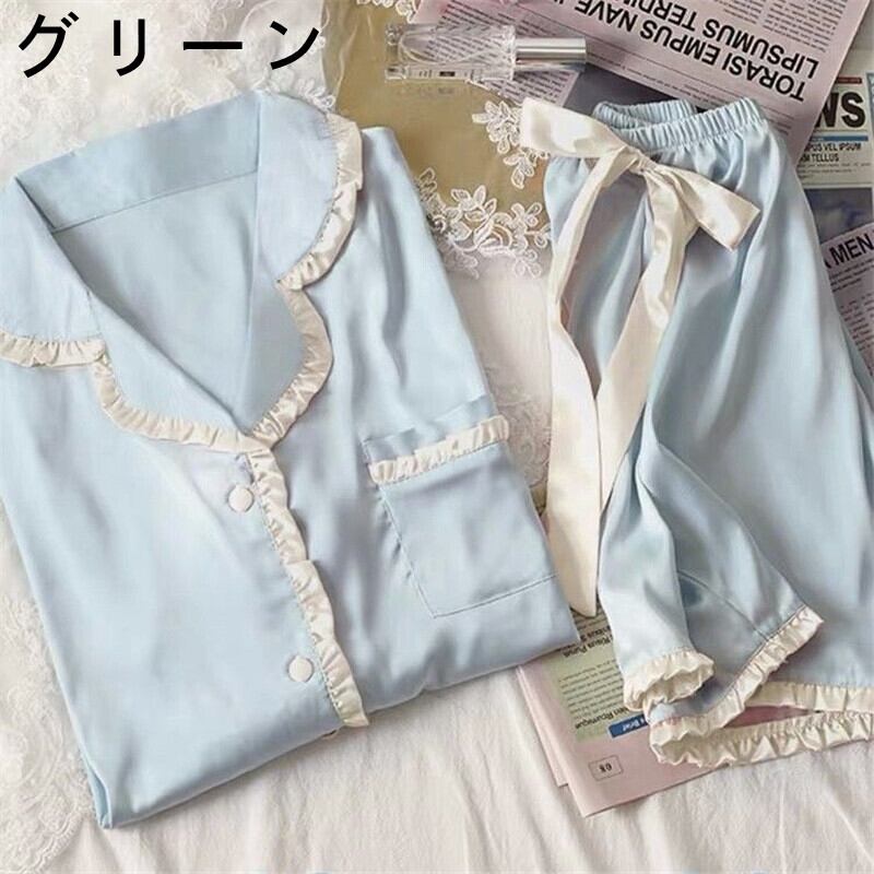 大好評 カジュアル 2点セット 切り替え 無地 折り襟 半袖セット・パジャマ36698690