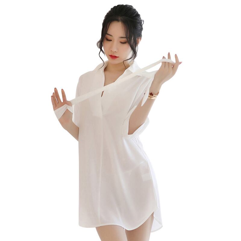 【ROSEシリーズ】シャツ レディース ブラウス 7分袖 セクシー 誘惑 ルームウェア パジャマ 透明 ランジェリー36707732