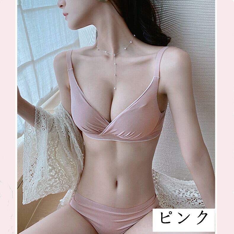 (ABカップ)快適な着心地 6色 無地 シンプルでオシャレ 脇肉ホールド ブラ&ショーツセット36731911