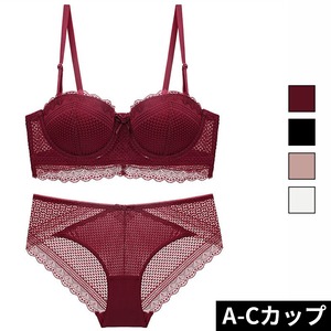 (A-Cカップ)レース 無地 チューブトップ ハーフカップ 上薄下厚 薄型 ブラ&ショーツセット36770305