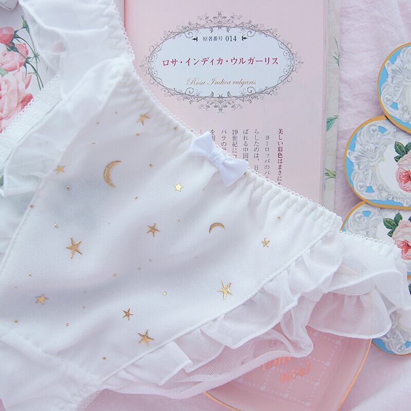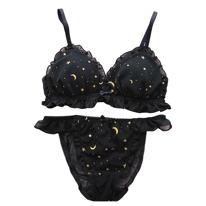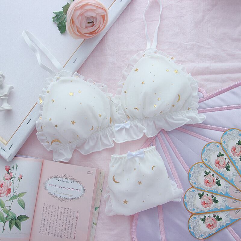 (A-Cカップ)上品らしく 少女 レース 月プリント ワイヤーなし ブラ&ショーツセット36962974