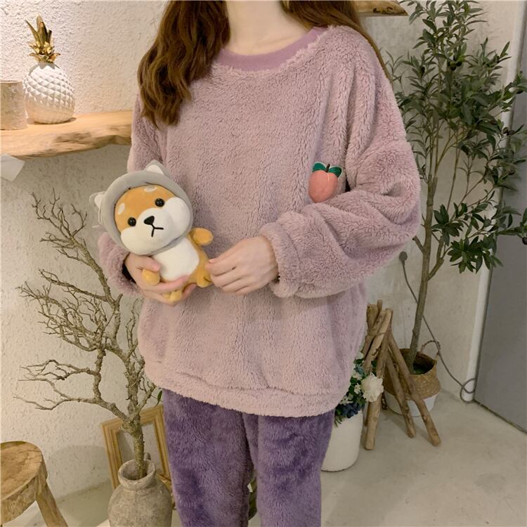 桃 かわいい 2色 ラウンドネック フルーツ 暖かい 長袖セット・パジャマ36983147
