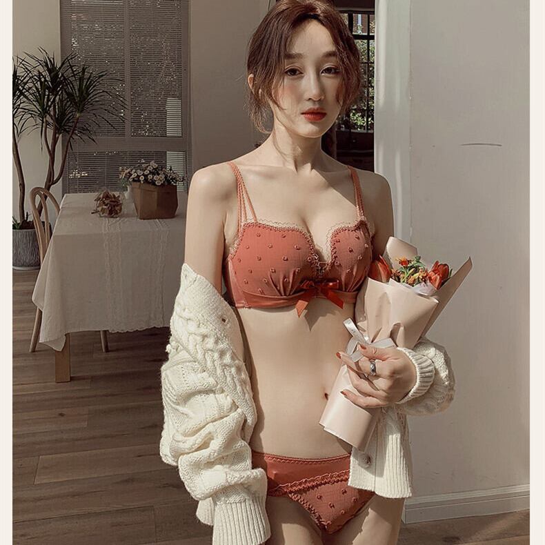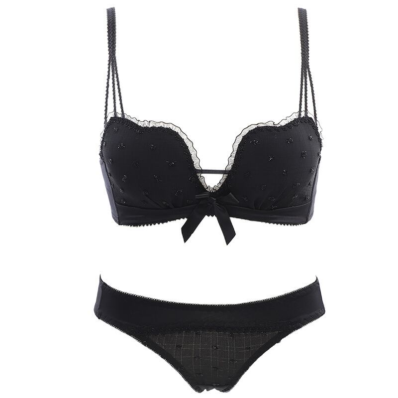(ABカップ) レース フリル リボン 水玉柄 小胸 脇肉ホールド ワイヤーなし ブラ&ショーツセット37022327