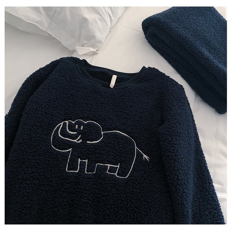 韓国系 2色 小象 ラウンドネック 無地 暖かい 秋冬 M L LL 長袖セット・パジャマ37173716